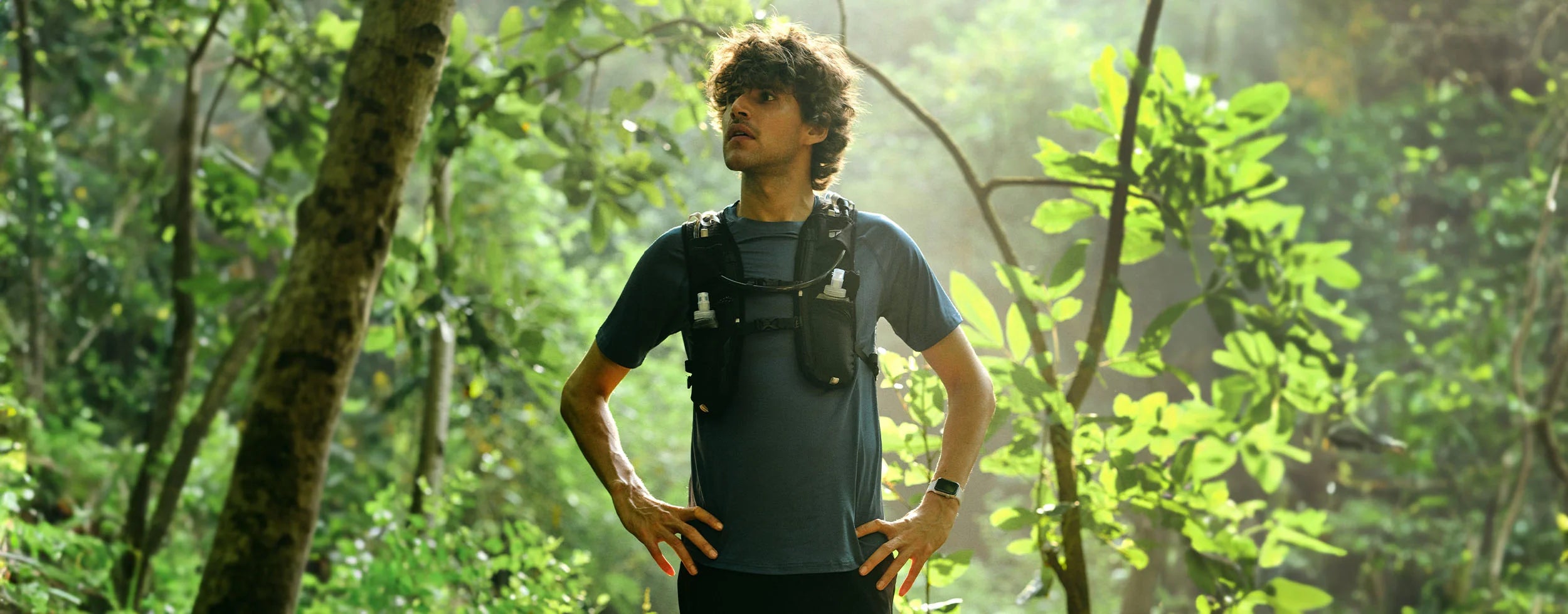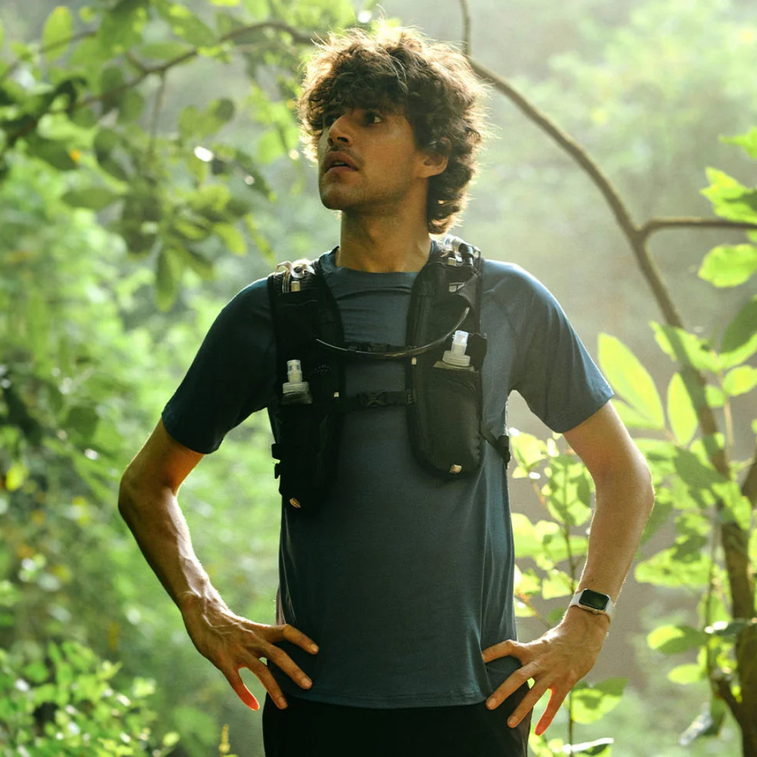 En el bolsillo trasero, de gran capacidad, puedes guardar objetos grandes como nuestra bolsa de almacenamiento de agua — espacio suficiente incluso para un libro, si lo necesitas. Todo organizado y accesible durante tu carrera.